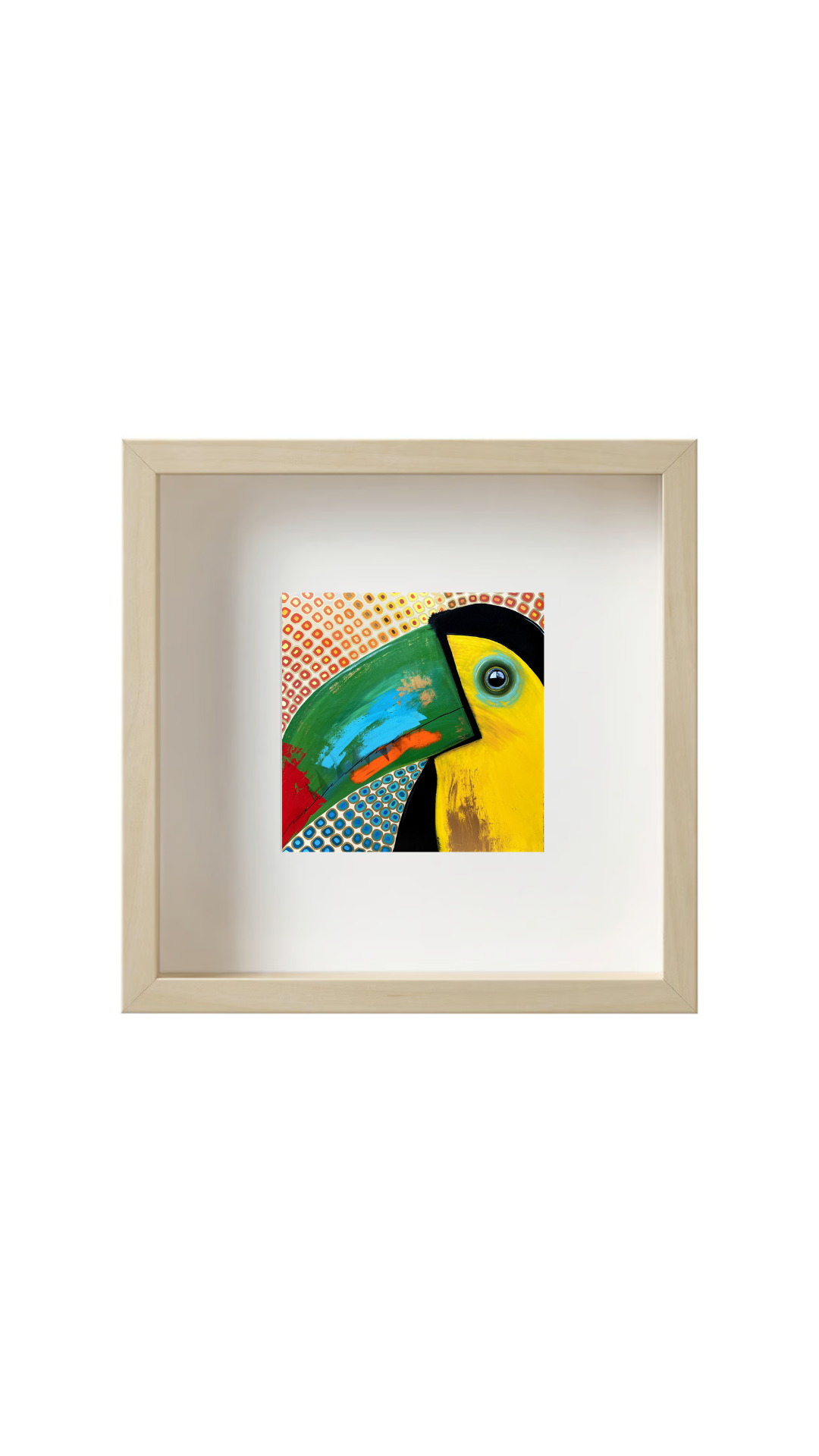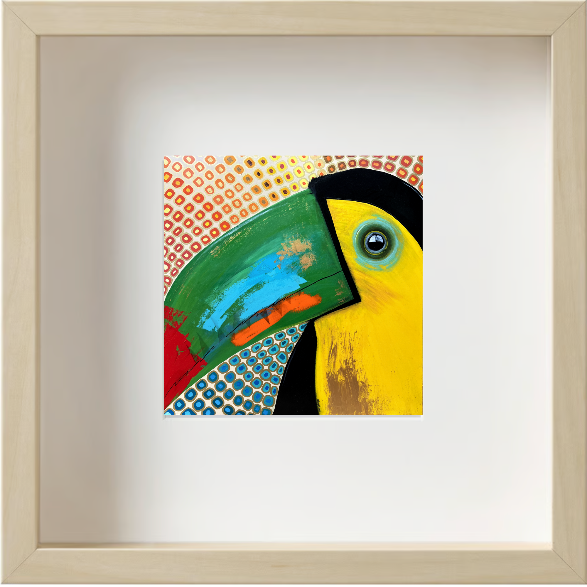 “Pakito el toucan” Medium: Print 13 cm x 13 cm, frame: 25 cm x 25 cm